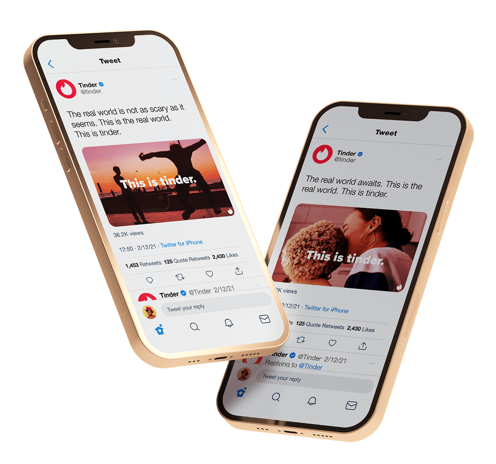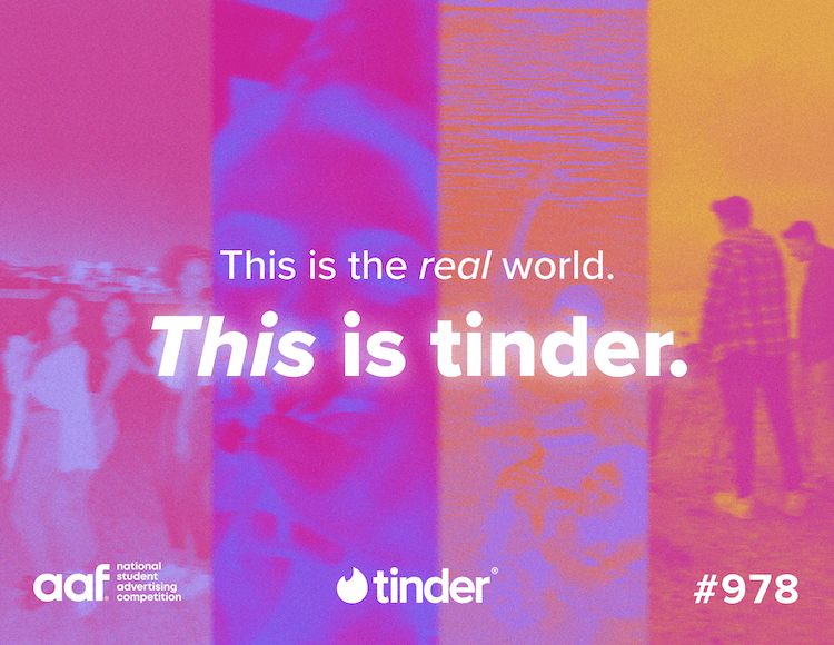 The American Advertising Federation hosts the annual National Student Advertising Competition (NSAC), where students across the United States ideate, develop, and present full-fledged marketing campaigns for major companies, such as Adobe, Pizza Hut, and more. This time, we strived to craft a marketing campaign for Tinder to reach 18-19 year olds in a genuine way.