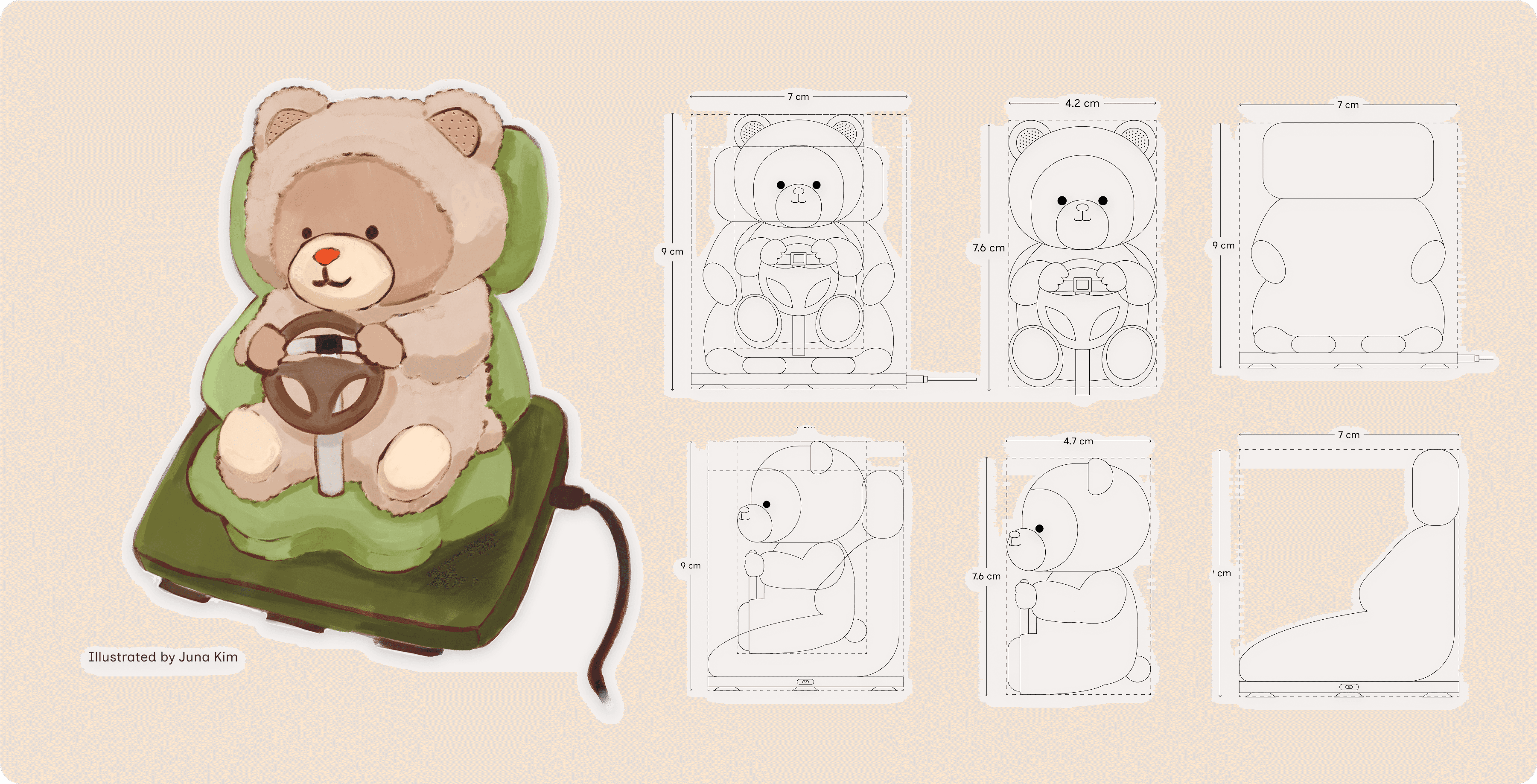 Tini (tee-nee) the Teddy is a voice AI driving companion designed to keep you awake, engaged, and safe on the road through audio engagement. Small enough to place on your car’s dashboard, Tini not only helps you navigate the roads, but holds real conversations with you like having a friend tagging along on your commute. Tini uses an LLM-based agent to maintain natural conversation, connects via USB-C, and features a touch-sensitive nose for manual activation, with microphones embedded in the ears for clear voice input. A suction cup base ensures the companion remains stable while the vehicle is in motion.